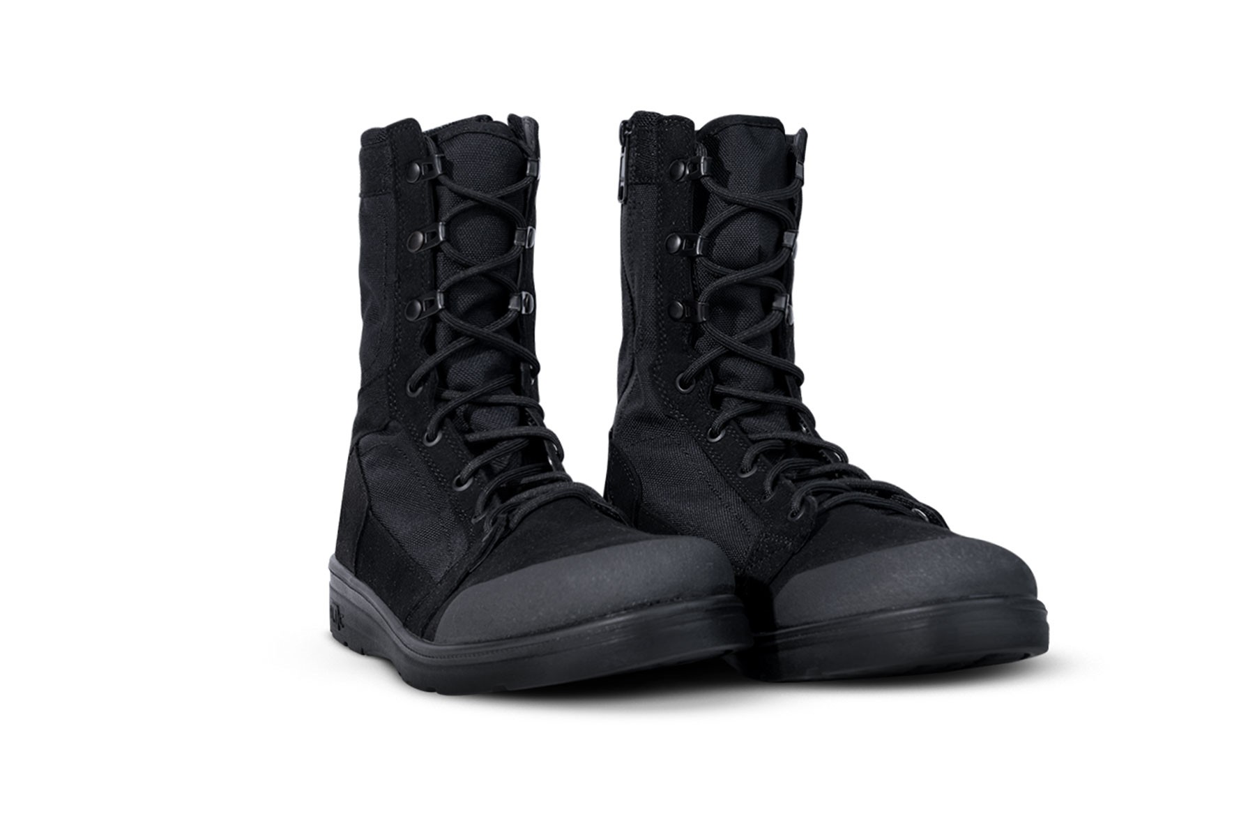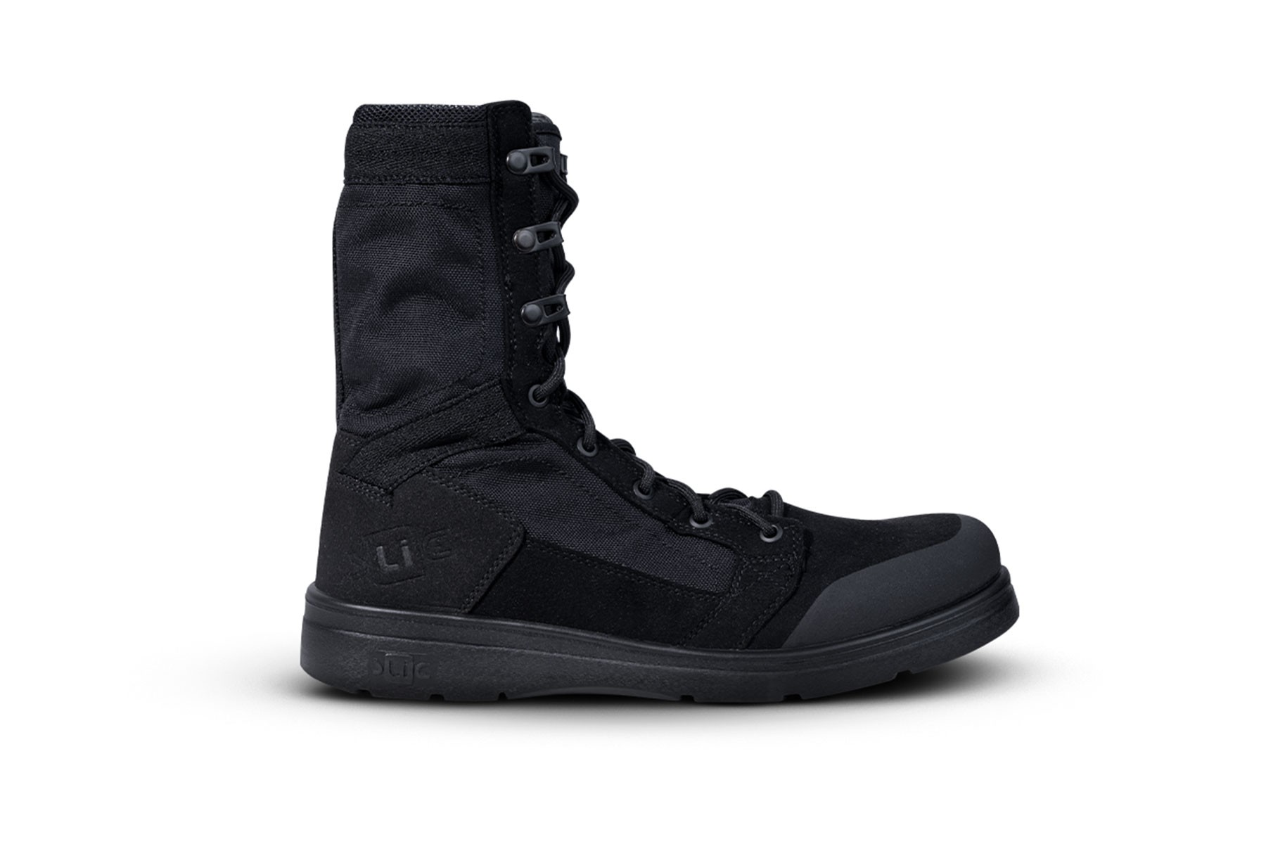 - Black military boot design, ideal for field use.